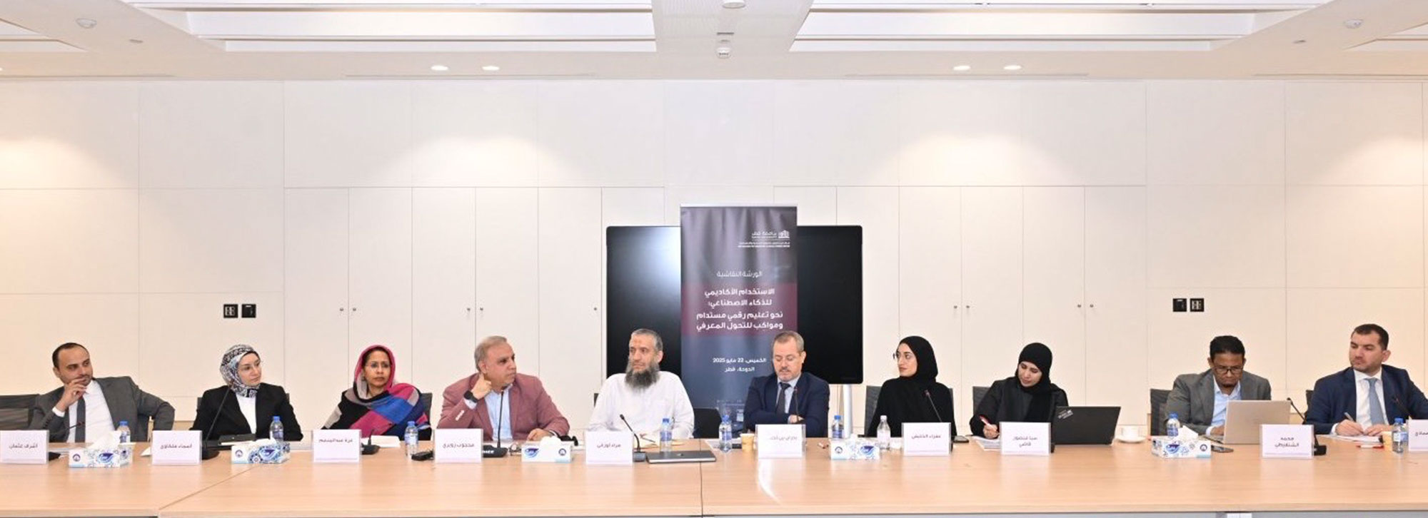 ​ نظَّم مركز ابن خلدون للعلوم الإنسانية والاجتماعية بجامعة قطر ورشة علمية بعنوان: "الاستخدام الأكاديمي للذكاء الاصطناعي: نحو تعليم رقمي مستدام ومواكِب للتحول المعرفي"، وذلك يوم الخميس الموافق 22 مايو، 2025، وقد انعقدت الورشة في القاعة (رقم: B114) بمبنى كلية القانون في جامعة قطر، وشارك فيها عددٌ من الخبراء والأساتذة والطلبة المهتمين بالذكاء الاصطناعي من مختلف الوزارات والجامعات والمراكز والمؤسسات العلمية في دولة قطر.