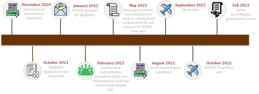 The Institutional Accreditation Committee and the Institutional Accreditation Steering Committee consisted of members from different sectors in QU to engage QU community in the process.