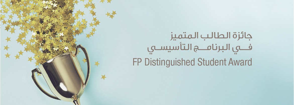 The Foundation Program Distinguished Student Award aims to accentuate the outstanding academic performance of the Foundation Program students. Additionally, the award aims to celebrate their contributions to the wider extracurricular activities based on the complementarity of students’ individual efforts and the Foundation Program community and its services.