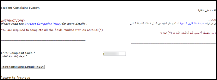 - Write your Complaint Code, click on Get Complaint Details.