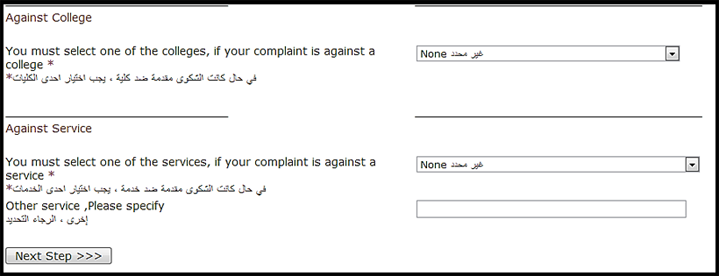 - Please read the Student Complaints Policies prior filling in all required information, then press Next Step. At anytime, you can go back by clicking Return to Previous.